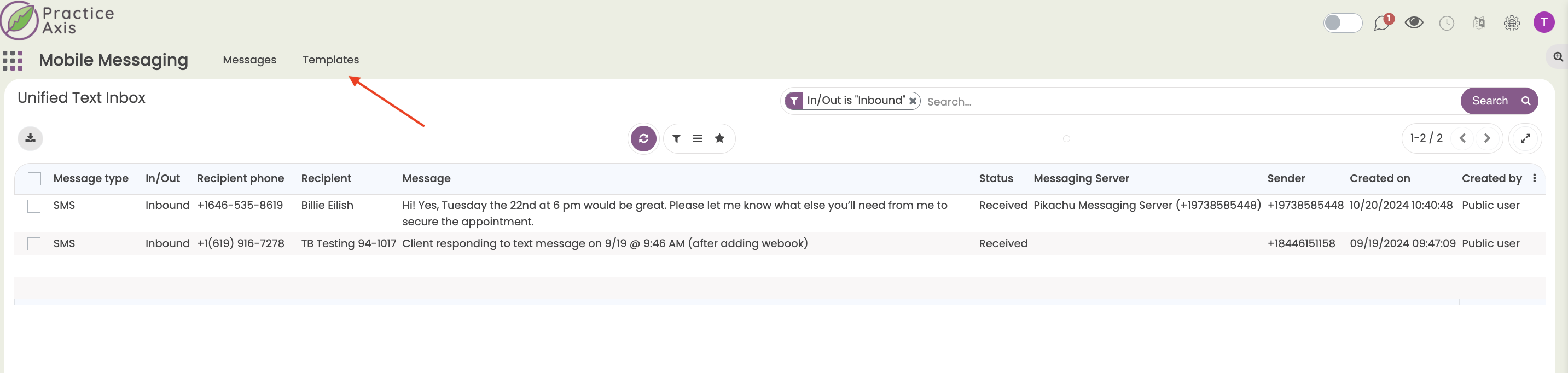 STEP 1: Navigate to the Templates area of the Mobile Messages app