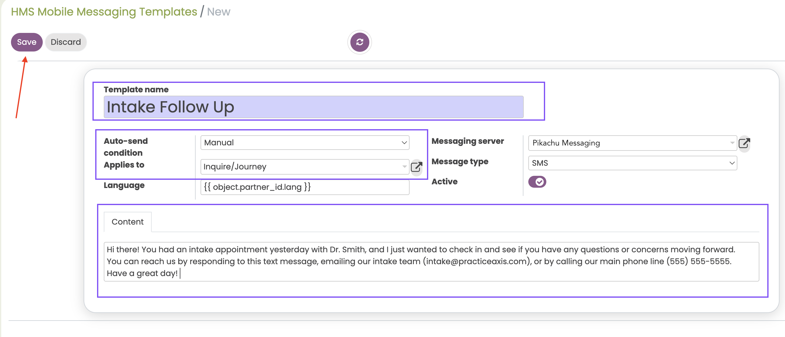 - Content - this will be the body of the message when that template is selected. You will be able to edit this content prior to sending it to the journey.